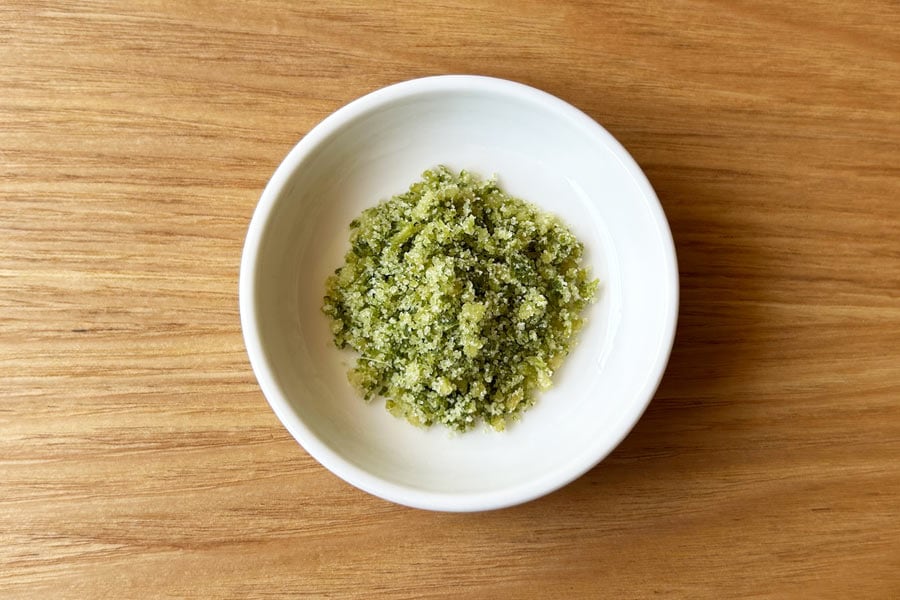 摘みたてのボタンボウフウと塩、玉ねぎをブレンドしました。